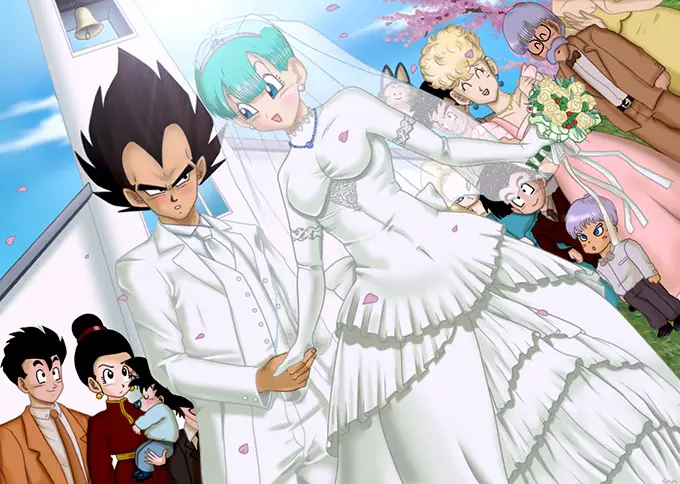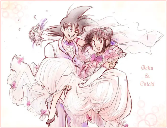 The difficulty of this post wasn’t in finding art, because there’s plenty of it out there. The difficulty was narrowing the scope and telling a story. To help do that I decided to constrain myself to Goku and Chi-chi, and Vegeta and Bulma. That’s why the focus here is on romantic love, not familial love.