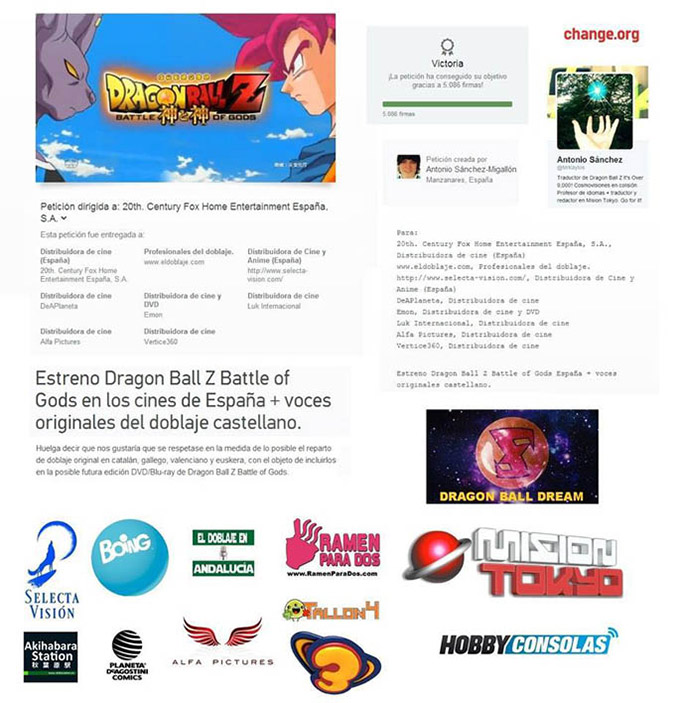 Ever since the Dragon Ball Z: Battle of Gods movie was released in Japan the fans in Spain have wanted to see it in theaters and hear it dubbed in their own language.