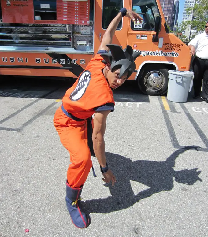 It was less than a month before Anime Expo and I get an email saying “Hey, we want you to be a part of our Dragon Ball booth at Anime Expo.” So I go in my Goku 7.0, no, 8.0 costume, and they have me do stuff like hand out fliers and things like that, but me being an actor and being good at projecting, I went all out. “Hey, sign up for the FUNimation channel!” “Give me your energy, sign up for FUNimation!” They were happy with that and then I did the same thing at Comic-Con.