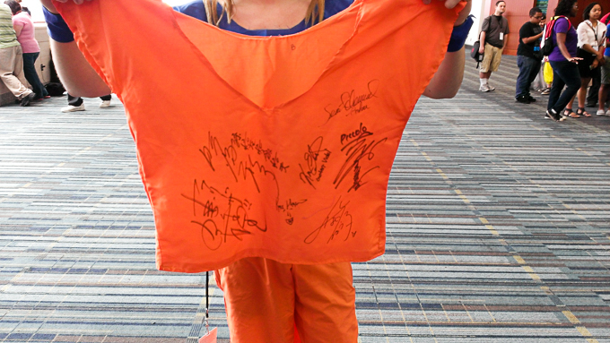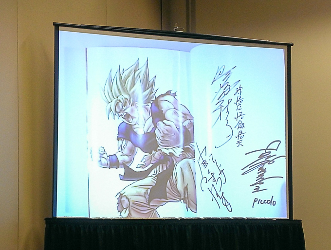 While waiting to enter the signing room, one of the first people in line was now walking out of the room carrying Goku’s orange dogi, fully autographed by all the voice actors.