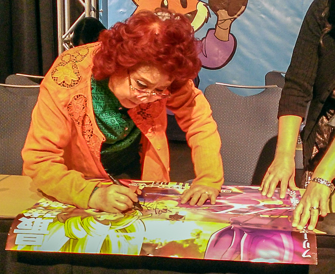 Masako Nozawa signing the Battle of Gods Poster: