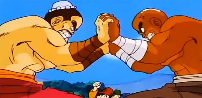 Goku advances, Yamcha advances, and Krillin defeats his older brothers from the Orinji martial arts temple, settling an old feud as he stands up to the bullies.